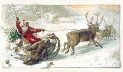 | reckon it was the night before Christmas in Northeast Arkansas, where the Seay family lived, fifteen, in all. The kids were crammed all in one bed, stacked three high and four wide, feet touchin' heads. With Willie in his overalls, that he wears all year 'round, and Thelma sewing quilts, not a peep or a sound! "Great day in the mornin'" , Willie heard a big racket, he put on his boots and grabbed a warm jacket. On the porch he went, to investigate the 'thud', It was a team of mules and wagon, stuck in the mud! n top of the wagon sat a big ol' man, a floppy hat, pipe, and Prince Albert in a can. He had a long gray beard, curly and clean, wearing the funniest red long-johns, Willie ever seen! He was haulin' sacks full of cotton, at least Willie had thought, not cotton, but gifts that the ol' man had brought. Willie hollerd to the ol' man, as he hopped down right here, "...kinda' late to get your cotton in, this time of year!" y then Thelma and the kids had come out of the house, Willie said, " Me and my boys can get your wagon out!" "Just give me the reins, we'll haul it out of the yard, when ya' hear me holler , you boys... pull real hard!" "ON ODAS, ON CLAUDIE, ON ROBERT AND ROY! ON DANNY, ON RAYMOND, Hey RONALD.... RACK IT BACK MORE!!!" hey pulled and they pulled 'till the wagon came free, the 'ol man got back in and he thanked , Mr. Seay! "Well ..., Mr. Seay, I gotta head down the road, but take one of the sacks to lighten my load." Willie replied,... "Merry Christmas, to you and yours,... and we'll see ya' Tuesday..... ...Wednesday for sure!" |