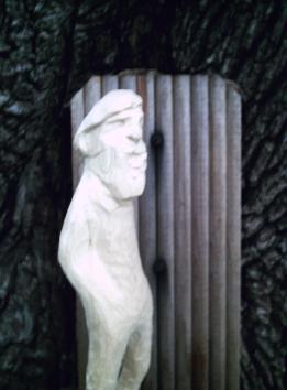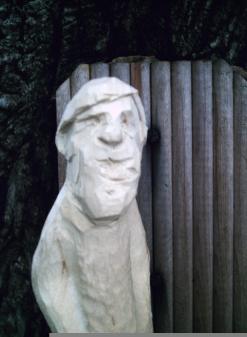 | Well, Willie didn't have a beard so a shave is in order and I cut off the hat area in an attempt to give him his full head of hair! The simple rule for this carving is whittle away any part that is not Willie! I'll need to be carefull not to slice of a nose or ear... |