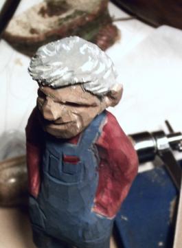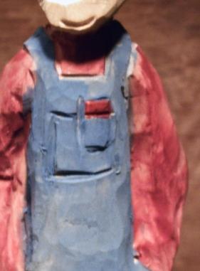 | Time for paint.... Now the carving is done its time to paint, I use acrylic craft paints. I found a jean blue color thats perfect for the overalls!!! |